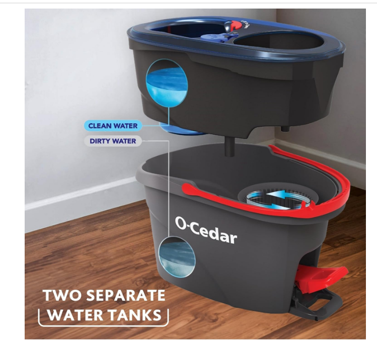 • CLEAN WITH CLEAN WATER: The O-Cedar RinseClean Spin Mop lets you clean your floors with clean water from start to finish. Never mop with dirty water again